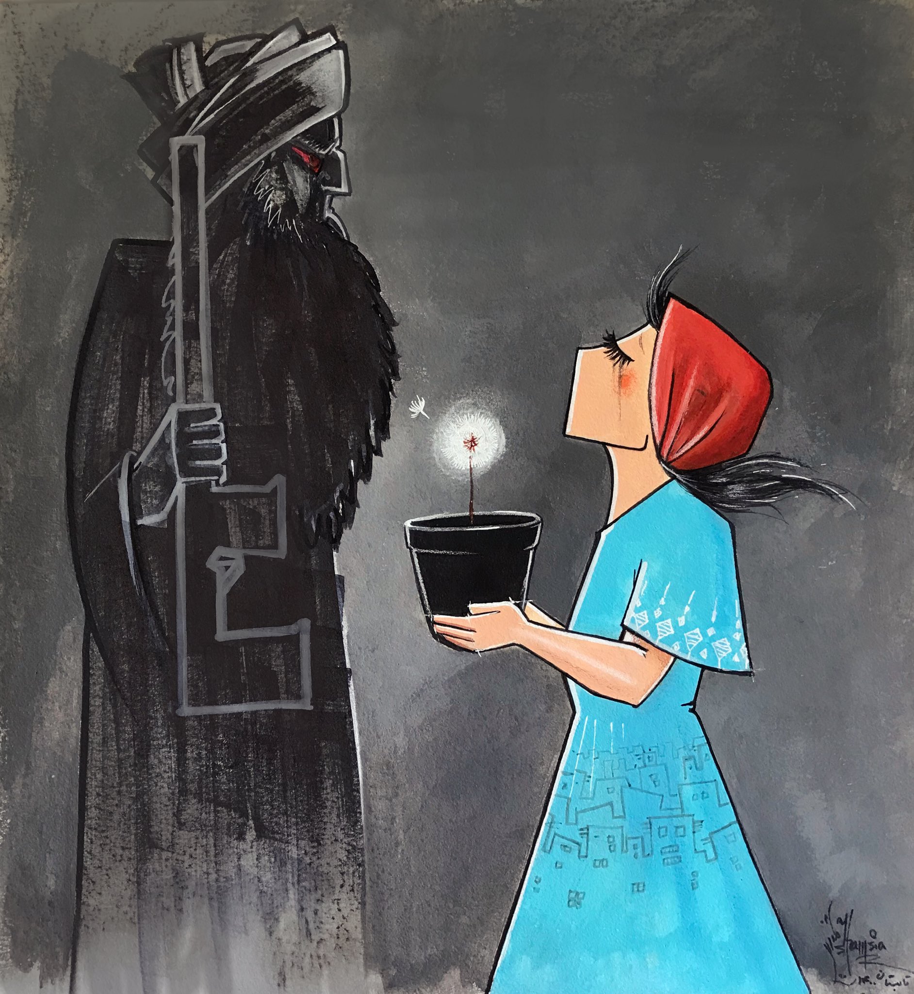 डेथ टू डार्कनेस, नाइटमेर शीर्षक से हस्सानी ने अपने ट्विटर अकाउंट पर ये पेंटिंग पब्लिश की हैं.